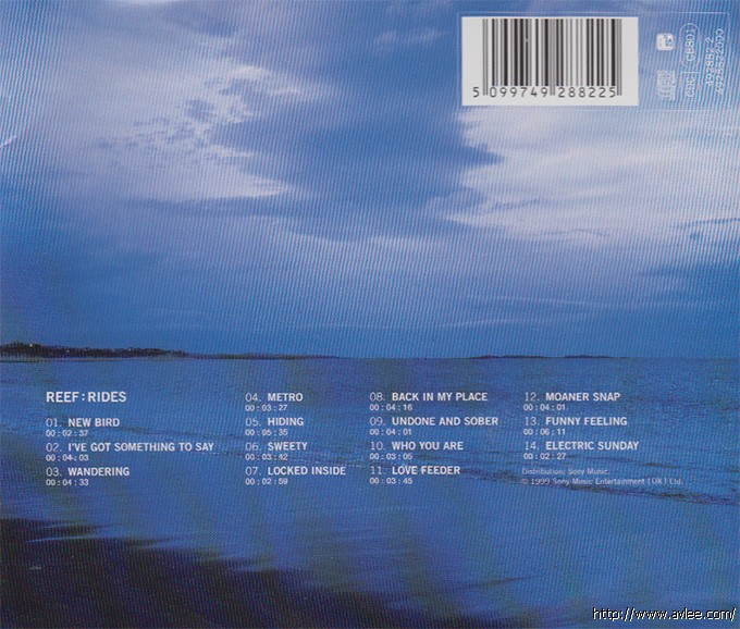 唱片名称:RIDES 4928822 艺术家名称: REEF发行公司:SONY发行编号:CB801发行日期:1999年