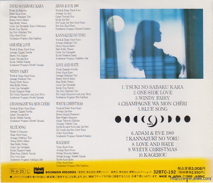 唱片名称: LUNA 艺术家名称:KAORI KUNO发行公司:BOURBON 发行编号:32BTC-192发行日期:1988年