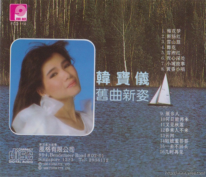 唱片名称: 旧曲新姿 第六辑歌手名称:韩宝仪 发行公司:风格唱片有限公司发行编号:FCD114发行日期:1990