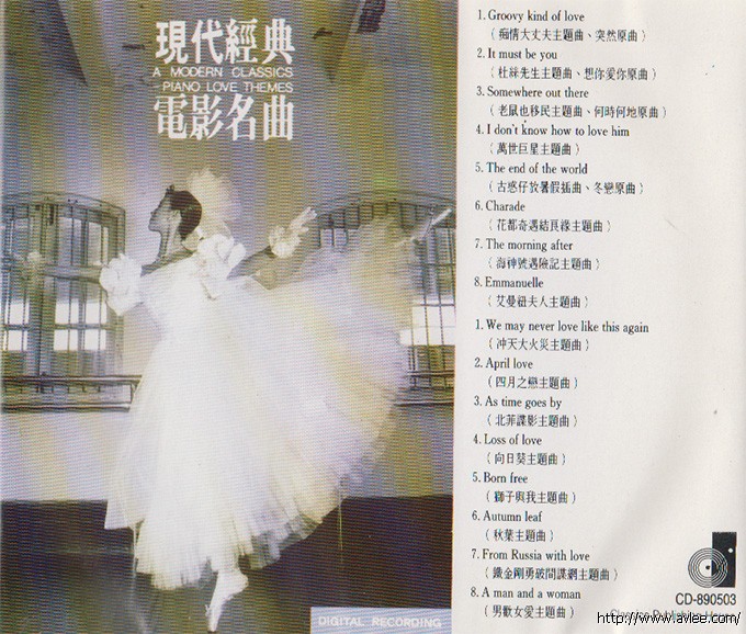 唱片名称:现代经典电影名曲发行公司:DIGITAL发行编号:CD-890503发行日期:1989年
