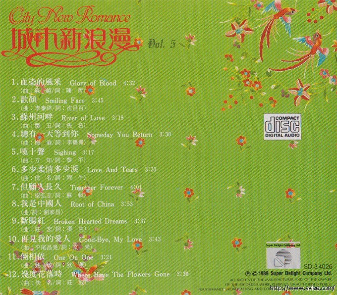 唱片名称:城市新浪漫 VOL.5发行公司:SUPER DELIGHT COMPANY LTD发行编号:SD-34026发行日期:1989年