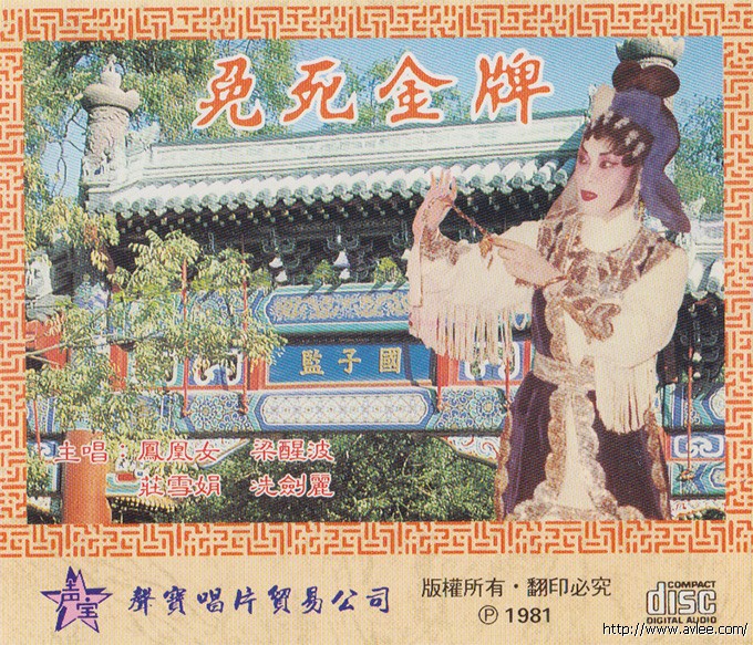 唱片名称:免死金牌歌手名称:凤凰女 梁醒波 庄雪娟 冼剑丽发行公司:声宝唱片贸易公司发行日期:1981年
