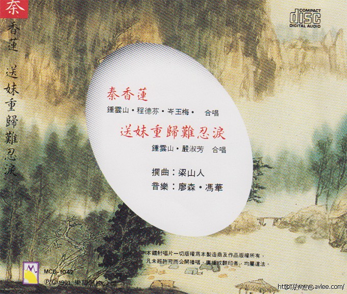 唱片名称:秦香莲 送妹重归难忍泪发行公司:乐韵唱片公司发行编号:MCD-1042发行日期:1991年
