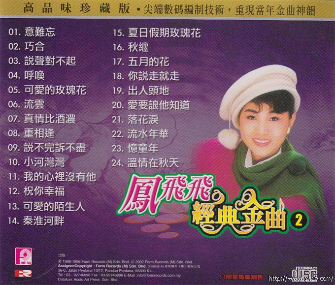 唱片名称:凤飞飞 经典金曲2歌手名称:凤飞飞发行编号:FMCD 2804-S发行日期:1996年