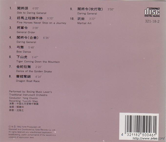 唱片名称:华山论剑歌手名称:中国北京爱乐中乐团发行编号:321-18-2发行日期:1992年