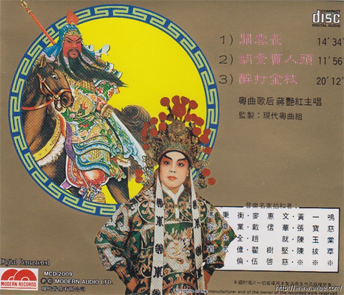 唱片名称:蒋艳红 关云长歌手名称:蒋艳红发行公司:MOOERN RECORDS发行编号:MCD-2009