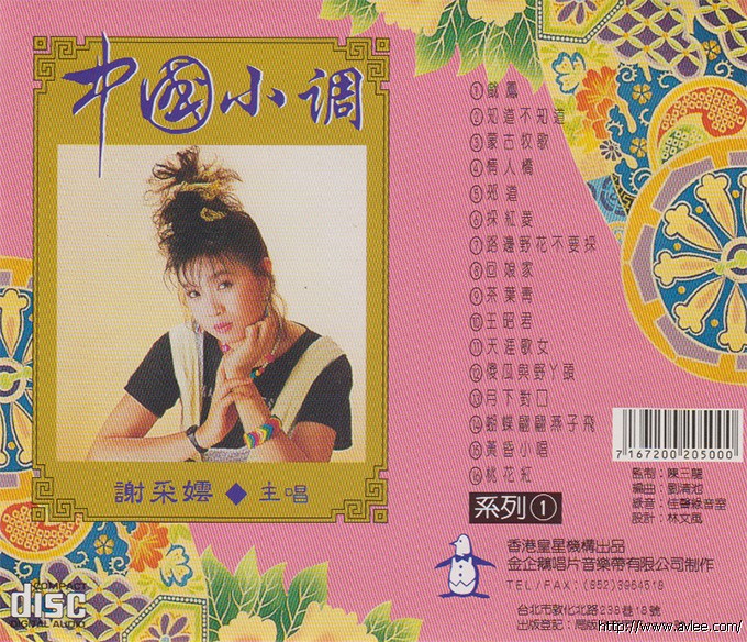唱片名称:谢采妘 中国小调1歌手名称:谢采妘发行公司:皇星发行编号:GCD-2050