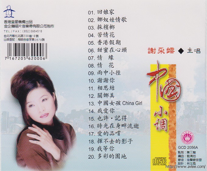 唱片名称: 谢采妘 中国小调6歌手名称: 谢采妘发行公司:皇星发行编号:GCD 2056A