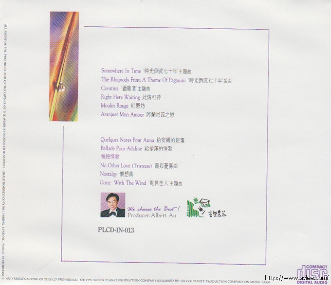 唱片名称: 心的净化-赏雨发行编号:PLCD-IN-013发行日期:1991年