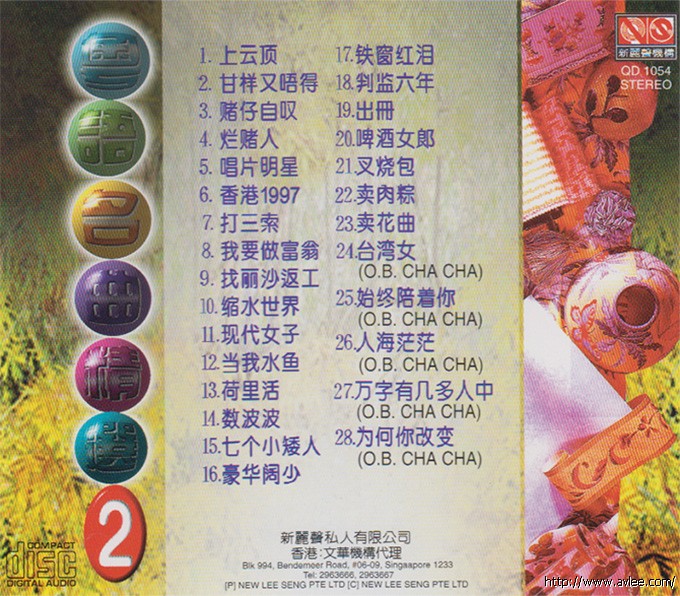 唱片名称:粤语名曲精选2 发行公司:新丽声私人有限公司发行编号:CD 1054