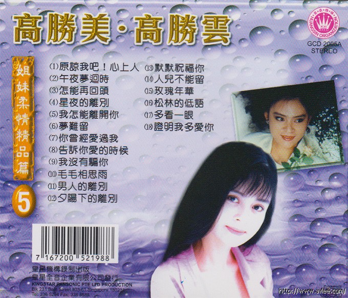 唱片名称:高胜美 高胜云 姐妹旧韵精华篇5歌手名称:高胜美 高胜云发行公司:皇星发行编号:GCD 2005A