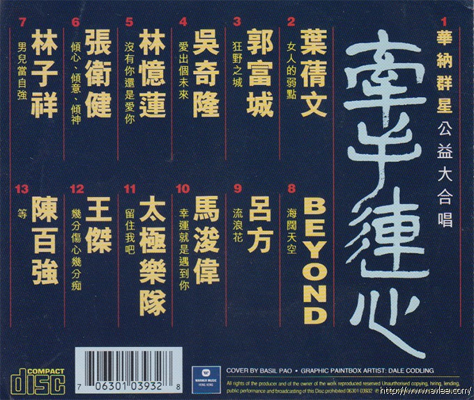 唱片名称:华纳群星公益大合唱 牵手连心 金曲精选发行日期:1996年