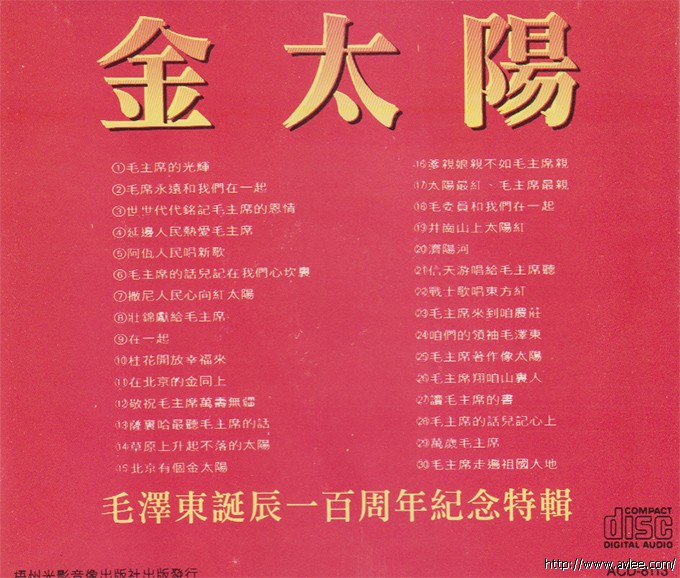 唱片名称:金太阳 毛泽东诞辰一百周年纪念特辑