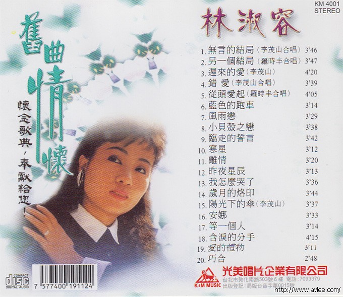 唱片名称:林淑容 旧曲情怀歌手名称:林淑容发行公司:光美唱片发行编号:KM 4001