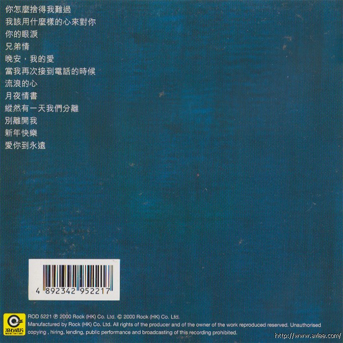 唱片名称:十年浓情 黄品源情歌精选歌手名称:黄品源发行公司:滚石唱片发行编号:RCD 5221发行日期:2000年