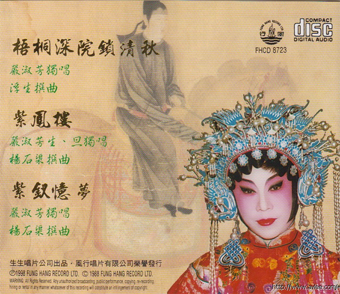 唱片名称:梧桐深院锁清秋 严淑芳歌手名称:严淑芳发行公司:风行发行编号:FHCD 8723发行日期:1998年