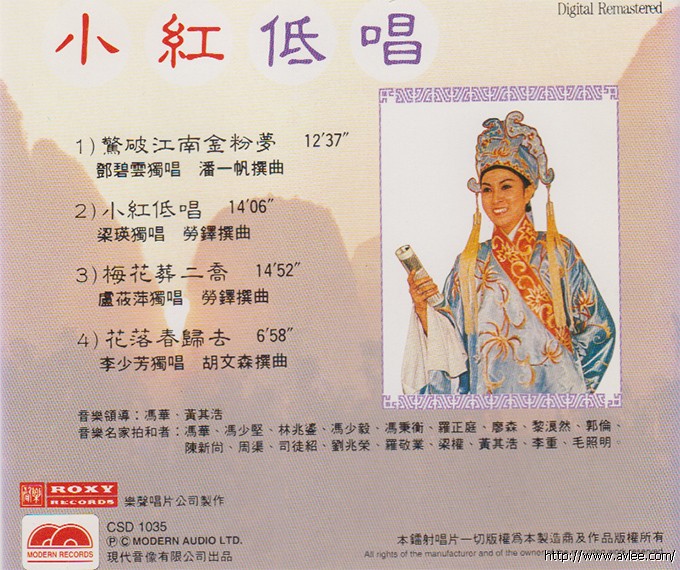 唱片名称:小红低唱歌手名称:梁瑛发行公司:现代音像发行编号:CSD 1035