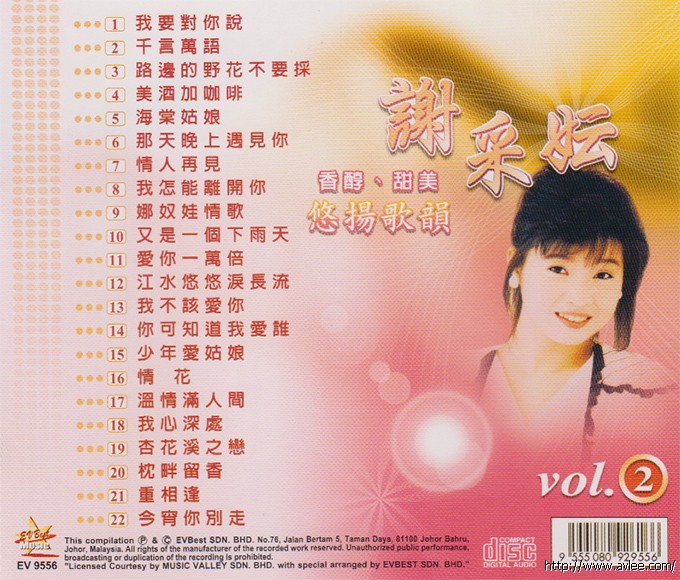 唱片名称:谢采妘 悠扬歌韵2歌手名称:谢采妘发行编号:EV 9556