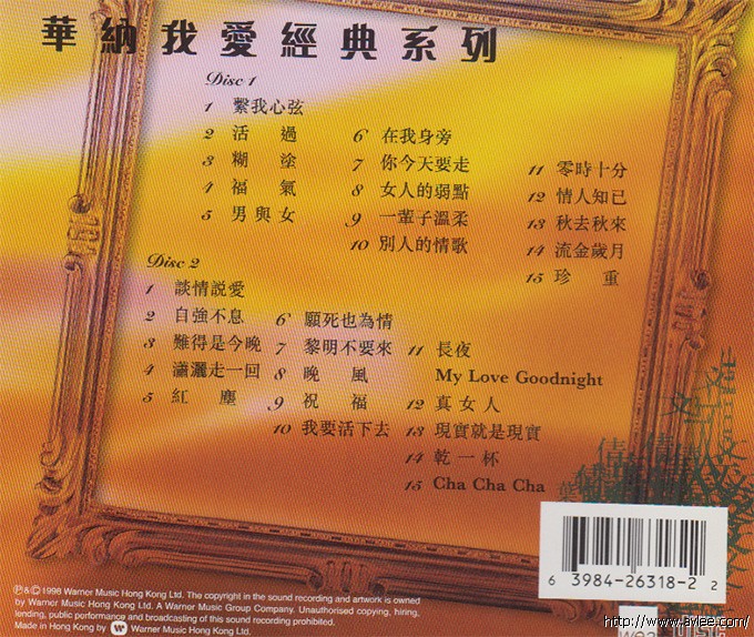 唱片名称:叶倩文 华纳我爱经典系列歌手名称:叶倩文发行日期:1999年