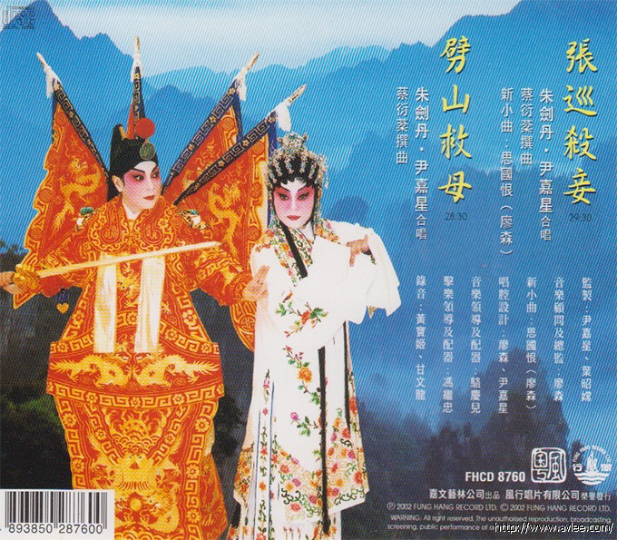 唱片名称:张巡杀妾 劈山救母歌手名称:朱剑丹 尹嘉星发行公司:风行唱片发行编号:FHCD 8760发行日期:2002年