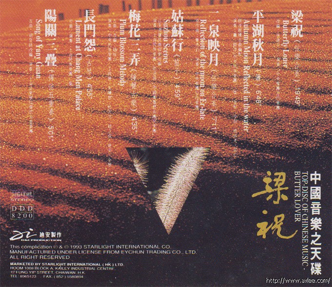 唱片名称:中国音乐之天碟 梁祝发行编号:DDD8200发行日期:1993年