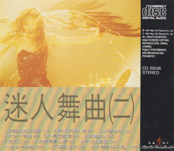 唱片名称:迷人舞曲(二)发行公司:文志唱片发行编号:CD 20536发行日期:1991年