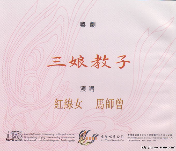 唱片名称:三娘教子歌手名称:红线女 马师曾发行公司:艺声唱片 发行编号:ACD-074
