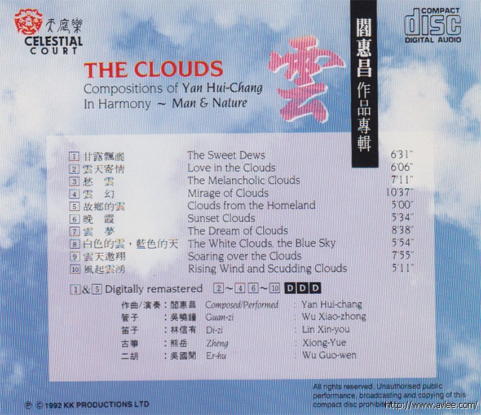 唱片名称:云歌手名称:阎惠昌发行编号:CR 92004发行日期:1992年