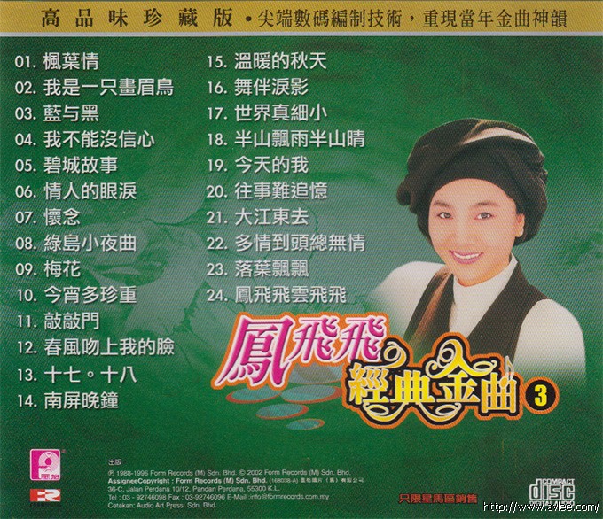 唱片名称:凤飞飞经典金曲 3歌手名称:凤飞飞发行编号:FMCD 2805-S发行日期:1996年