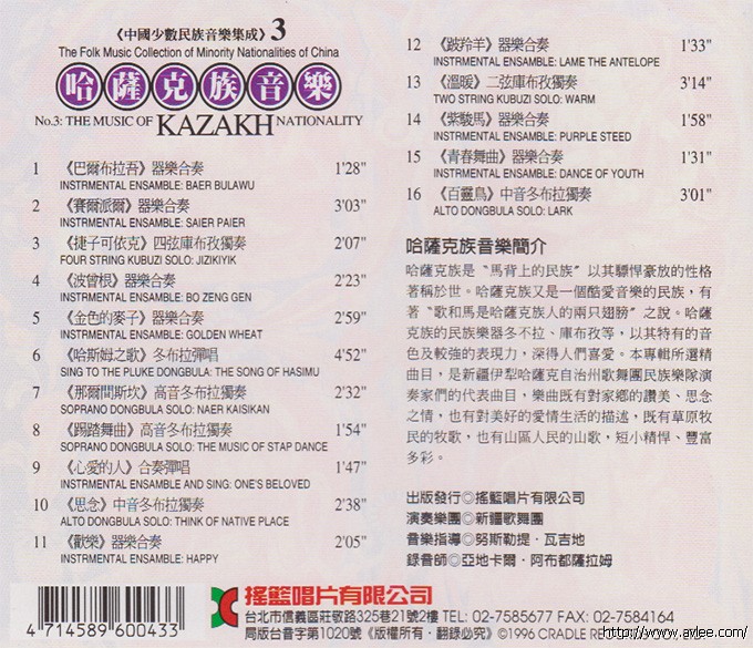 唱片名称:哈隆克族音乐