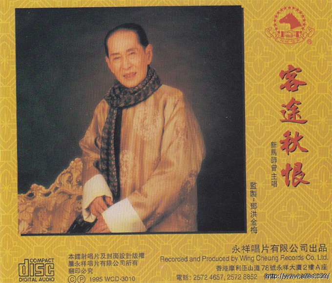 唱片名称:客途秋恨歌手名称:新马师曾发行公司:永祥唱片发行编号:WCD-3010发行日期:1995年