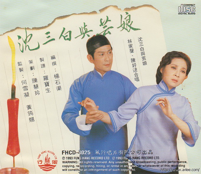 唱片名称:沈三白与芸娘歌手名称:林家声 陈好逑发行公司:风行唱片发行编号:FHCD-4025发行日期:1993年