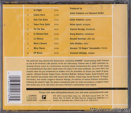 Eddie Palmieri是二十世纪后半最重要的拉丁爵士钢琴家之一,他活泼奔放的弹奏风格明显受到兄长Charlie Palmieri以及爵士钢琴大师McCoy Tyner的影响,而出生在纽约的背景则让他的拉丁音乐更多了些美国本土的爵士风味,第一个将骚莎(salsa)音乐引入前卫爵士的作曲家就是他。在不同音乐传统的互相融合下,他的创作往往迸发出耀眼的火花。Listen Here!这张专辑获得第48届格莱美奖最佳拉丁爵士专辑!