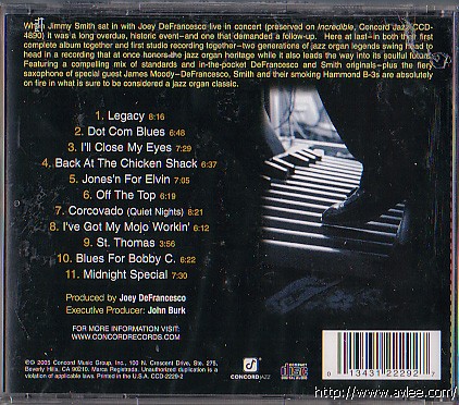 JAZZ CD名称:Legacy 艺术家名称:Jimmy Smith发行公司:Concord Records发行编号:CCD-2229-2发行日期:2005-02-15商品编号:001039商品单价:85元