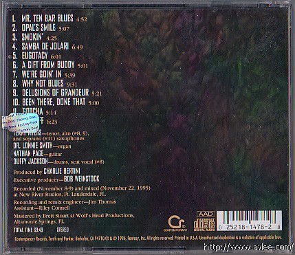JAZZ CD名称:SOUL MATES艺术家名称:TERRY MYERS发行公司:CONTEMPORARY发行编号:CCD-14078-2发行日期:1996商品编号:001264商品单价:85元