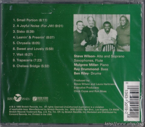 JAZZ CD名称:Generations艺术家名称:steve wilson发行公司:Stretch Records发行编号:SCD-9019-2发行日期:1998-09-15商品编号:001049
