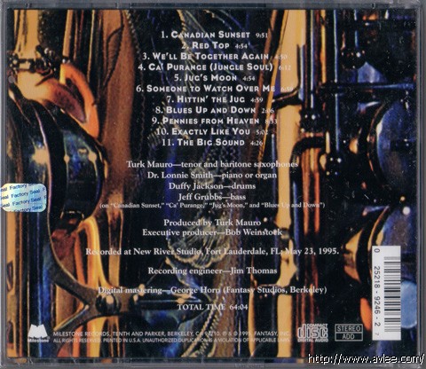 JAZZ CD名称:Hittin' the Jug 艺术家名称: Turk Mauro发行公司:Milestone发行编号:MCD-9246-2发行日期:1995-03-23商品编号:001275