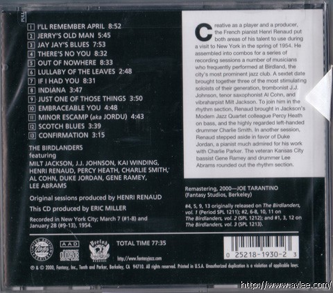 JAZZ CD名称:Birdlanders, Vol. 1 艺术家名称:The Birdlanders 发行公司:Ojc发行编号:OJCCD-1930-2发行日期:2000-05-09商品编号:001164