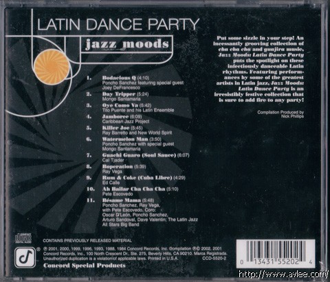 JAZZ CD名称: JAZZ MOODS 艺术家名称:LATIN DANCE PARTY发行公司:Concord Records发行编号:CCD-5520-2发行日期:2002商品编号:001233