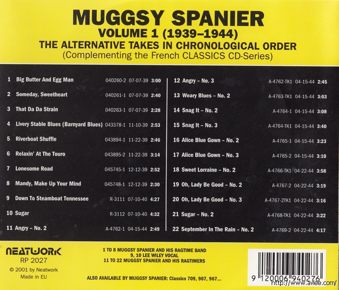 JAZZ CD名称:The Alternative Takes Vol.1 1939-1944 艺术家名称: Muggsy Spanier发行编号:RP 2027发行日期:2001-11-20发行公司:Neatwork