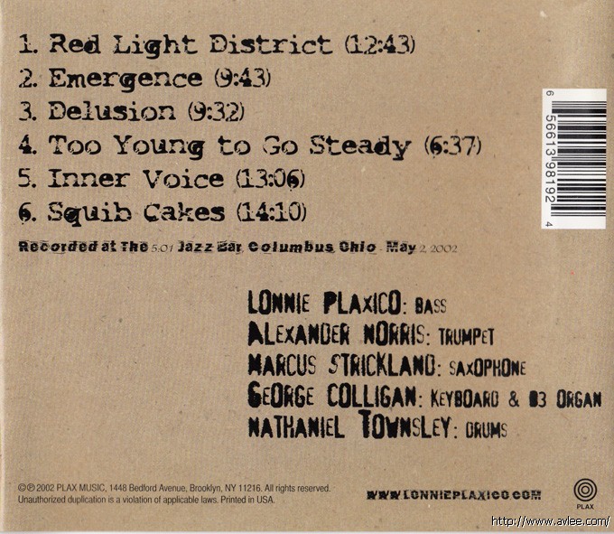 JAZZ CD名称:Lonnie Plaxico Live at The 5:01 jazz bar艺术家名称: Lonnie Plaxico发行编号:LP39819发行日期:2002-08-20发行公司:Plax Music