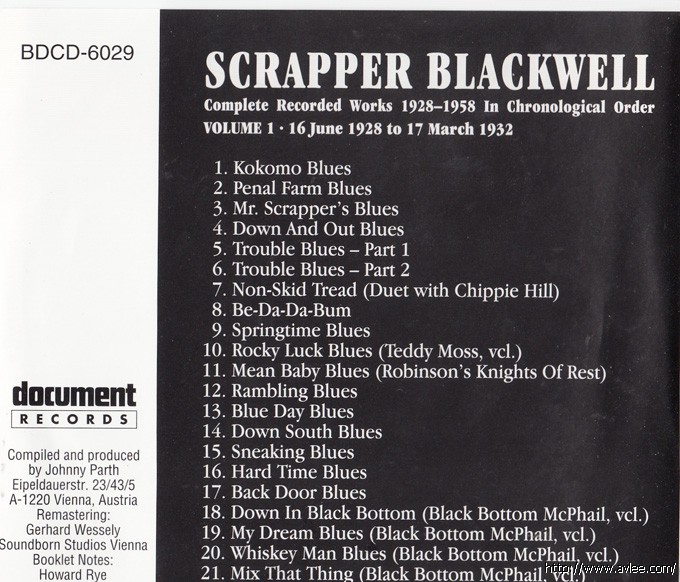 JAZZ CD名称:Scrapper Blackwell Vol.1 1928-1932