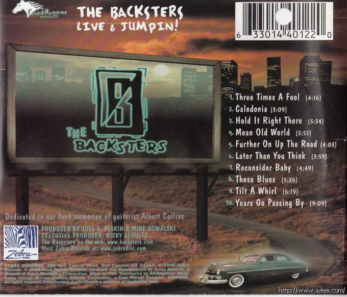 JAZZCD名称: Live And Jumpin'! 艺术家名称:The Backsters 发行公司:ZEBRA 发行编号:ZD 44012-2发行日期:1998年