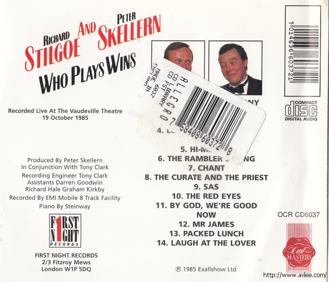 JAZZ CD名称:Who Plays Wins 艺术家名称: Stilgoe/Skellern发行编号:OCR CD6037发行日期:1985发行公司:First Night Records
