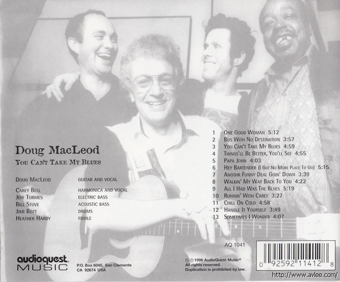 JAZZ CD名称:You Can't Take My Blues艺术家名称: Doug MacLeod发行编号:AQ-CD1041发行日期:1996发行公司:Audioquest Records