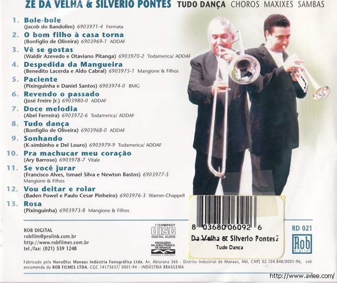JAZZCD名称:Tudo Danca Choros Maxixes Sambas 艺术家名称:ze da Velha / silverio Pontes发行公司:ROB发行编号:RD 021发行日期:1999年