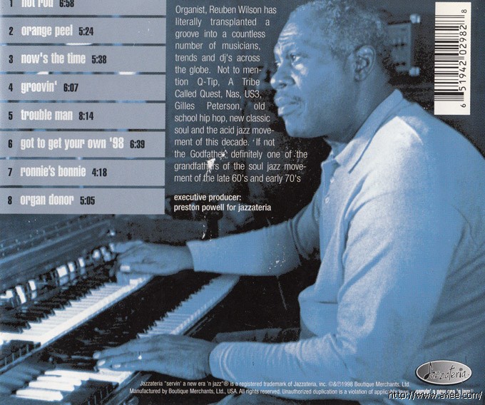 JAZZCD名称:Organ Donor 艺术家名称:Reuben Wilson 发行公司:JAZZATERIA发行编号:JZZD 20298-2发行日期:1998年