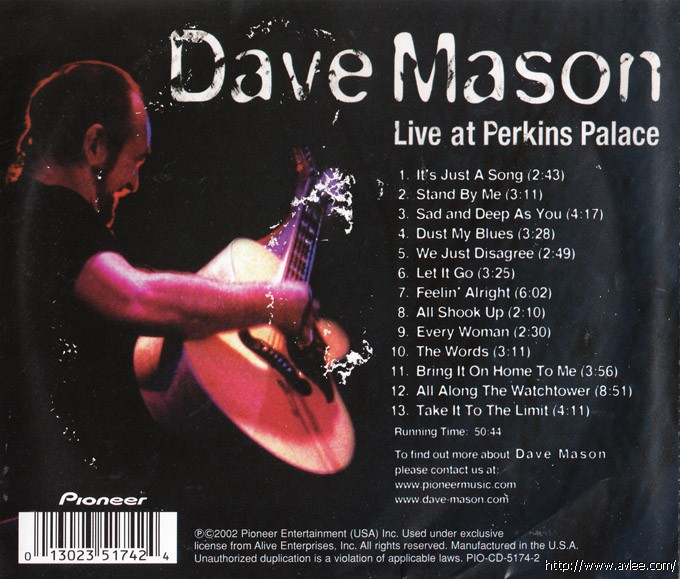 JAZZ CD名称:Live at Perkins Palace 艺术家名称: Dave Mason发行编号:PIO-CD-5174-2发行日期:2002-03-12发行公司:Bedrock UK