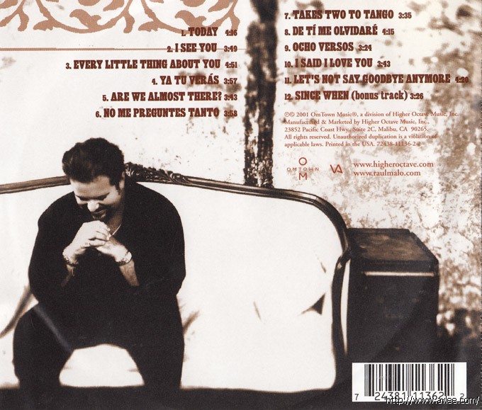 唱片曲目: 1 Today 2 I See You 3 Every Little Thing 4 Ya Tu Veras 5 Are We Almost There? 6 No Me Preguntes Tanto 7 Takes Two To Tango 8 De Ti Me Olvidar? 9 Ocho Versos 10 I Said I Love You 11 lET'S Not Say Goodbye Anymore 12 Since When