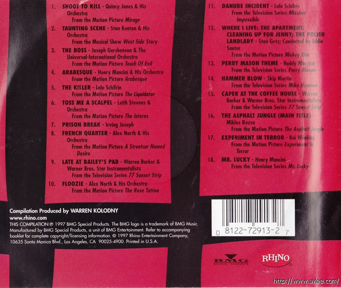 JAZZCD名称:Crime Jazz: Music in the Second Degree艺术家名称:Various Artists发行公司:BMG发行编号:R2 72913/DRC1 1622发行日期:1997年